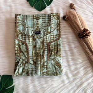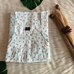 Green Floral Printed Premium Cotton Pleated Zip Nighty | Free Size | Chest Width 44″| Length 54″-55″