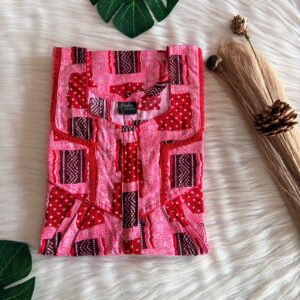 Pink And Brown Printed Premium Cotton Pleated Zip Nighty | Free Size | Chest Width 44″| Length 54″-55″