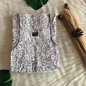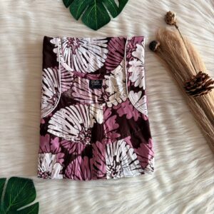 Maroon And White Floral Printed Premium Cotton Pleated Zip Nighty | Free Size | Chest Width 44″| Length 54″-55″