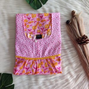 Yellow And Pink Printed Premium Cotton Lace Nighty | Free Size | Chest Width 44″| Length 54″-56″