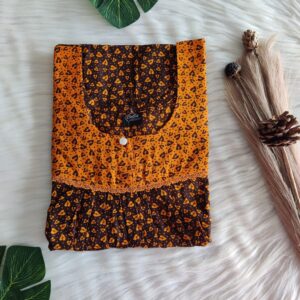 Brown And Yellow Printed Premium Cotton Lace Nighty | Free Size | Chest Width 44″| Length 54″-56″