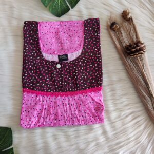 Pink And Coffee Brown Printed Premium Cotton Lace Nighty | Free Size | Chest Width 44″| Length 54″-56″