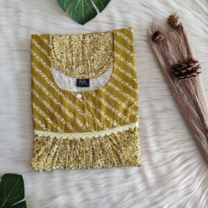 Olive Green And White Kalamkari Printed Premium Cotton Lace Nighty | Free Size | Chest Width 44″| Length 54″-56″