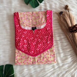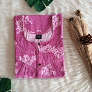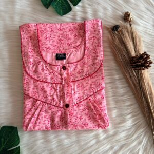 Red And Cream Floral Printed Premium Cotton Mix N Match Lace Pocket Nighty | Free Size | Chest Width 44″| Length 56″