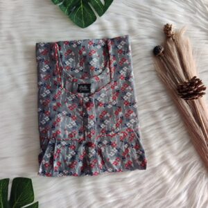 Grey Floral Printed Alpine Button Zip Nighty | Free Size | Chest Width 44″| Length 54″-56″