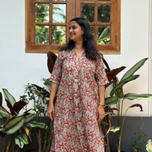 Maroon Kalamkari Printed Kantha Cotton Kurti 2 Piece Co-ord Set | BK0045