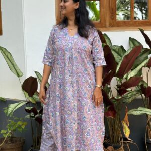 Lavender Floral Printed Cotton Kurti 2 Piece Co-ord Set | BK0043