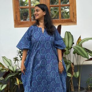 Navy-Blue Bandhani Printed Kantha Cotton Short Kaftan | BK0050