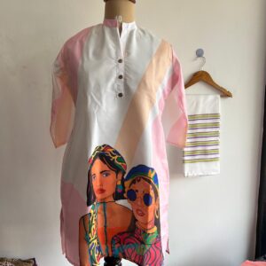 White Lady Face Digital Printed Rayon Kurti 2 Piece Co-ord Set | BK0053