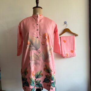 Peach Leaf Digital Printed Rayon Kurti 2 Piece Co-ord Set | BK0052
