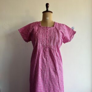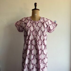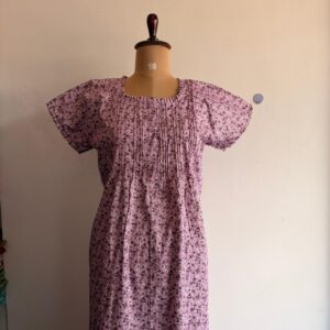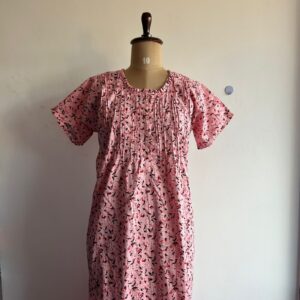 Pink Printed Premium Cotton Ruffle Neck Button Nighty | Chest Width 44″ | Length 54″-56″|