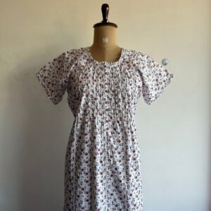 Brown Floral Printed White Premium Cotton Ruffle Neck Button Nighty | Chest Width 44″ | Length 54″-56″|