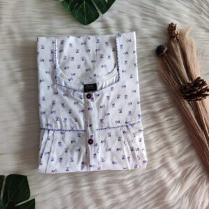 Blue Floral Printed White Pure Cotton Plus Size Pleated Zip Nighty | Chest Width 50″| Length 54″-56″