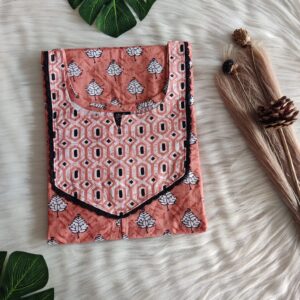 White And Orange Leaf Printed Premium Cotton Mix N Match Lace Pocket Nighty | Free Size | Chest Width 44″| Length 56″|