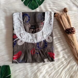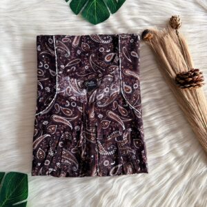 Coffee Brown Kalamkari Printed Premium Cotton Pleated Zip Nighty | Free Size | Chest Width 44″| Length 54″-55″