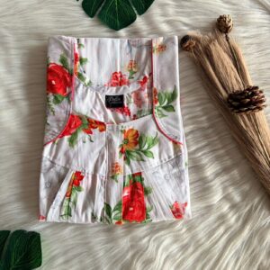 Red Floral Printed White Premium Cotton Pleated Zip Nighty | Free Size | Chest Width 44″| Length 54″-55″