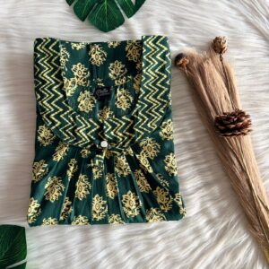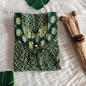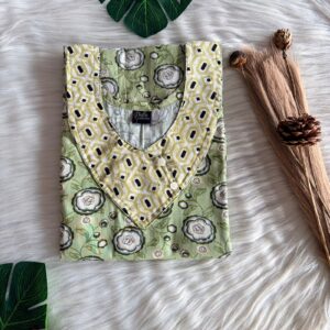 Pale Green Printed Premium Cotton Pleated Zip Nighty | Free Size | Chest Width 44″| Length 54″-55″