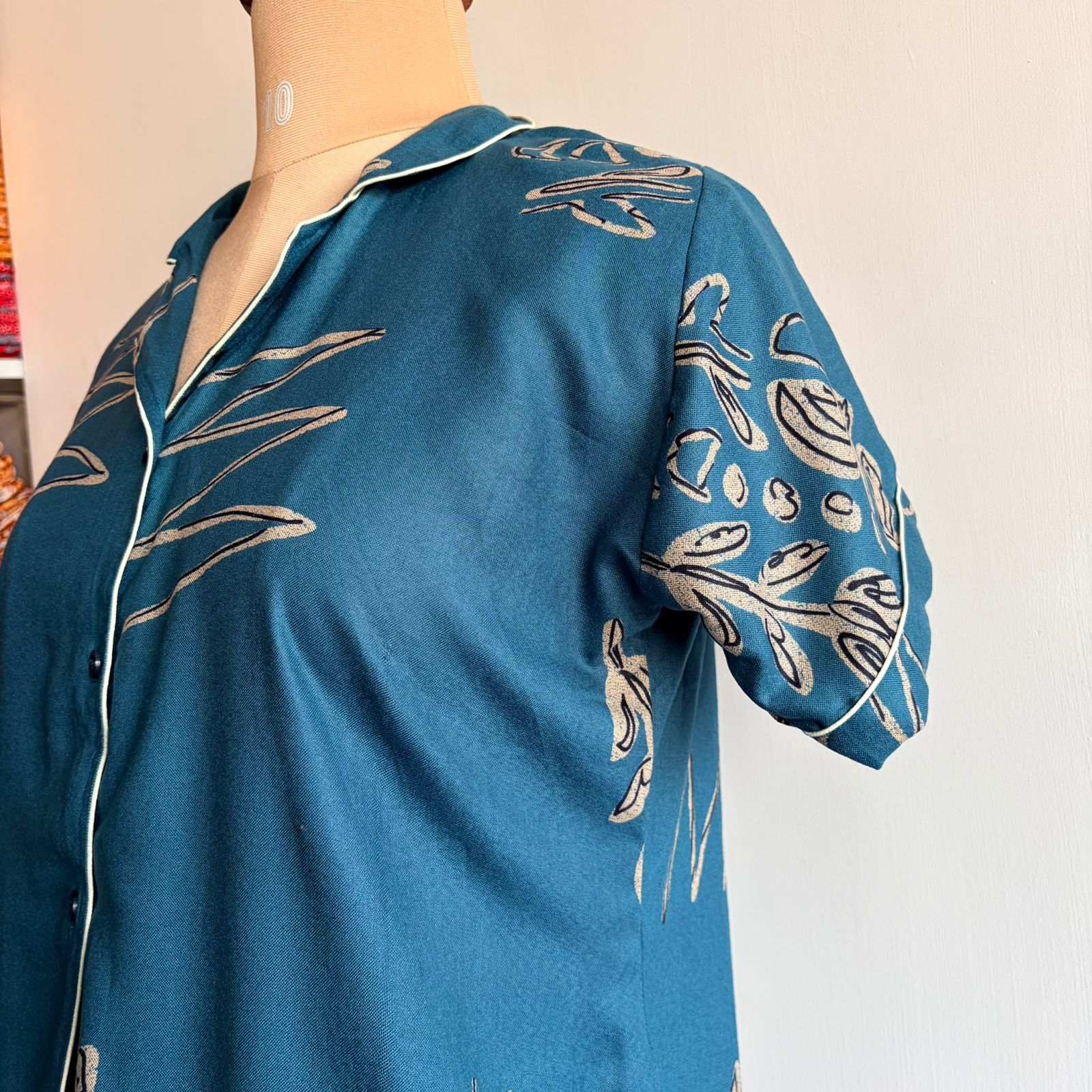 Blue Printed Alpine Full Open Long Polo Shirt Dress | Side Pocket | Free Size | Chest Width 44″| Length 44″