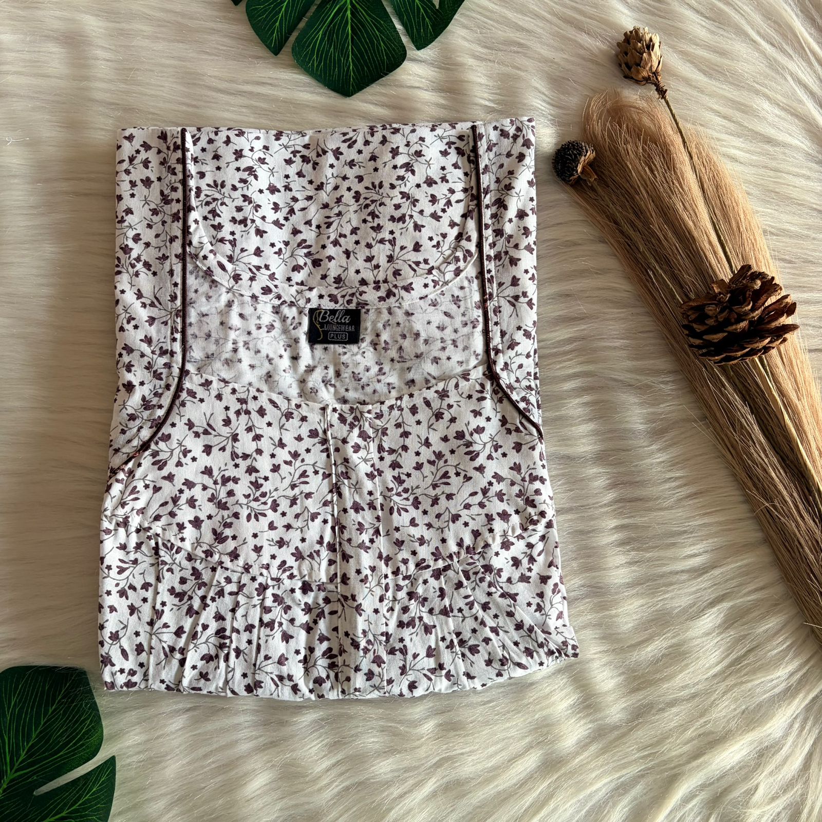 Brown Floral Printed White Pure Cotton Plus Size Pleated Zip Nighty | Chest Width 50″| Length 54″-56″