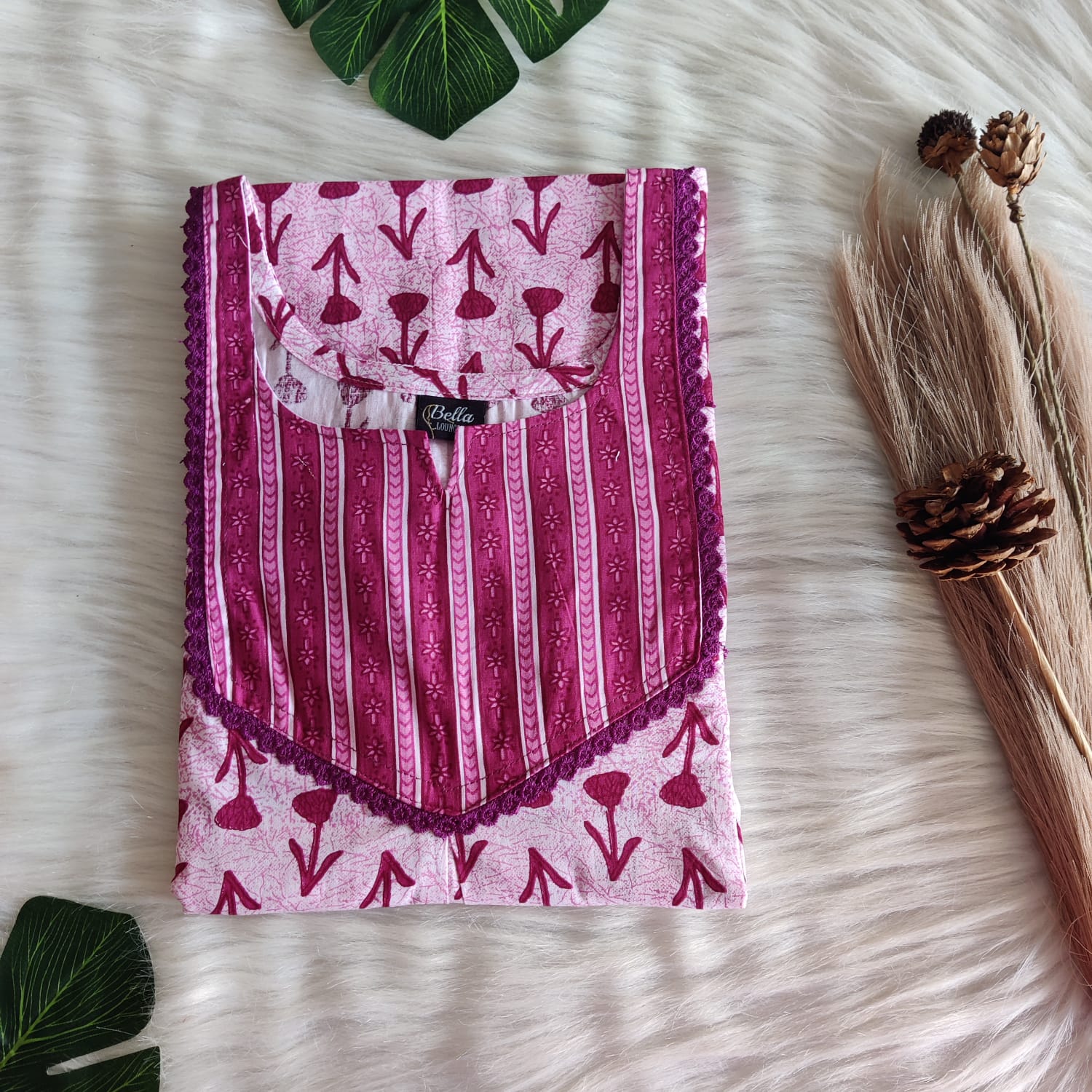 This nighty can be hand washed or a normal machine washed with cold water. Please make sure to dry the nighty in a light shade away from the direct sunlight. Prefer first wash as hand wash with cold water.