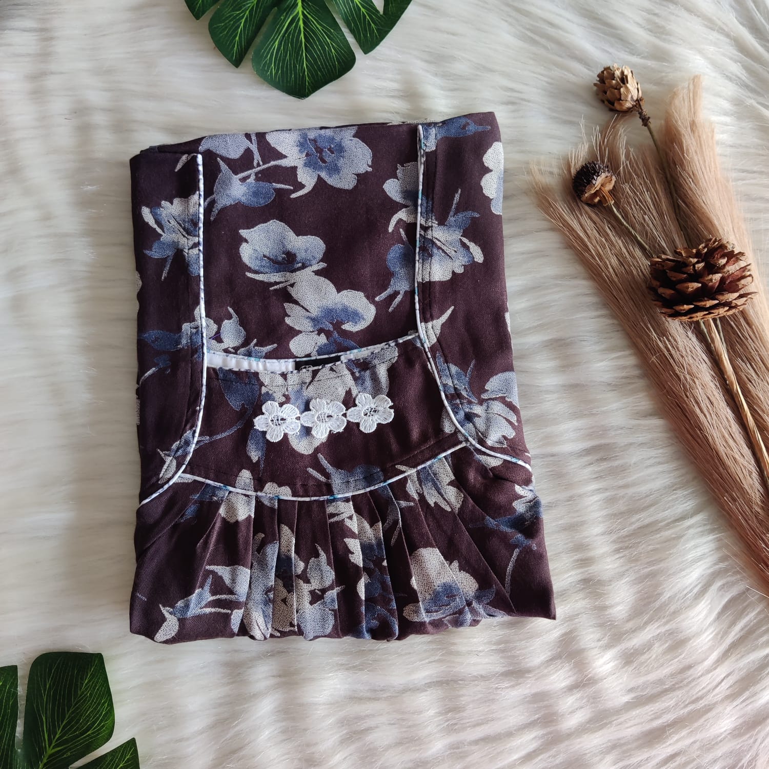 This nighty can be hand washed or a normal machine washed with cold water. Please make sure to dry the nighty in a light shade away from the direct sunlight. Prefer first wash as hand wash with cold water.
