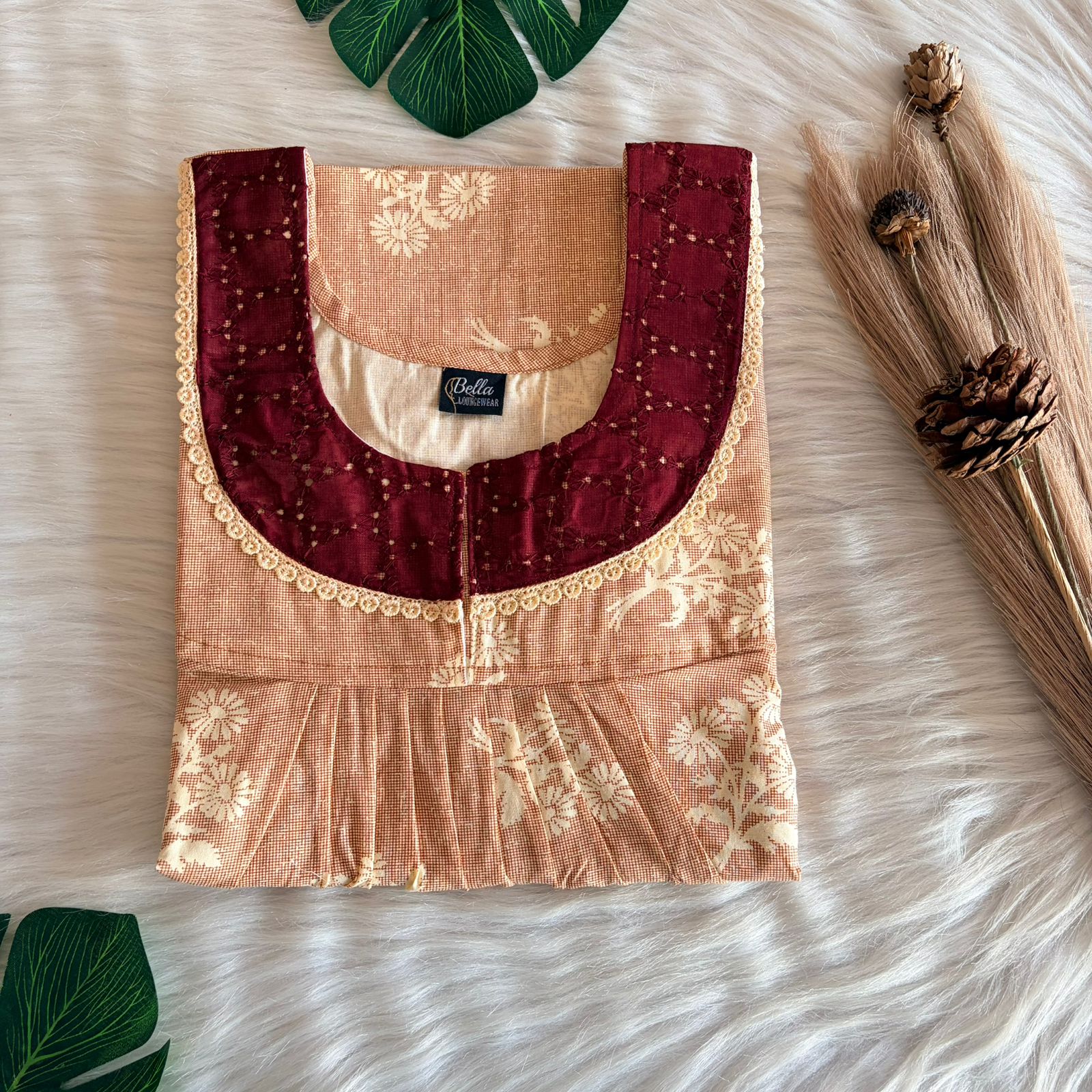 Maroon And Cream Floral Printed Pure Cotton Hakoba Lace Nighty | Free Size | Chest Width 44″| Length 54″-56″