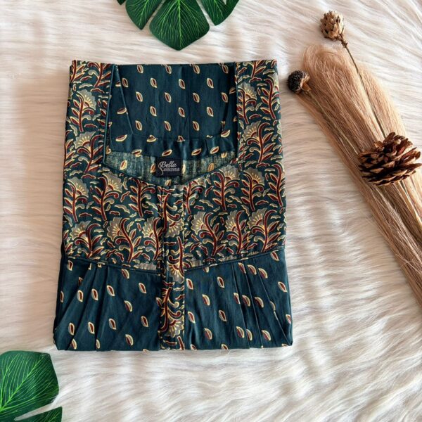 Maroon And Green Printed Premium Cotton Square Neck Pleated Nighty | Free Size | Chest Width 44″| Length 55″-56″
