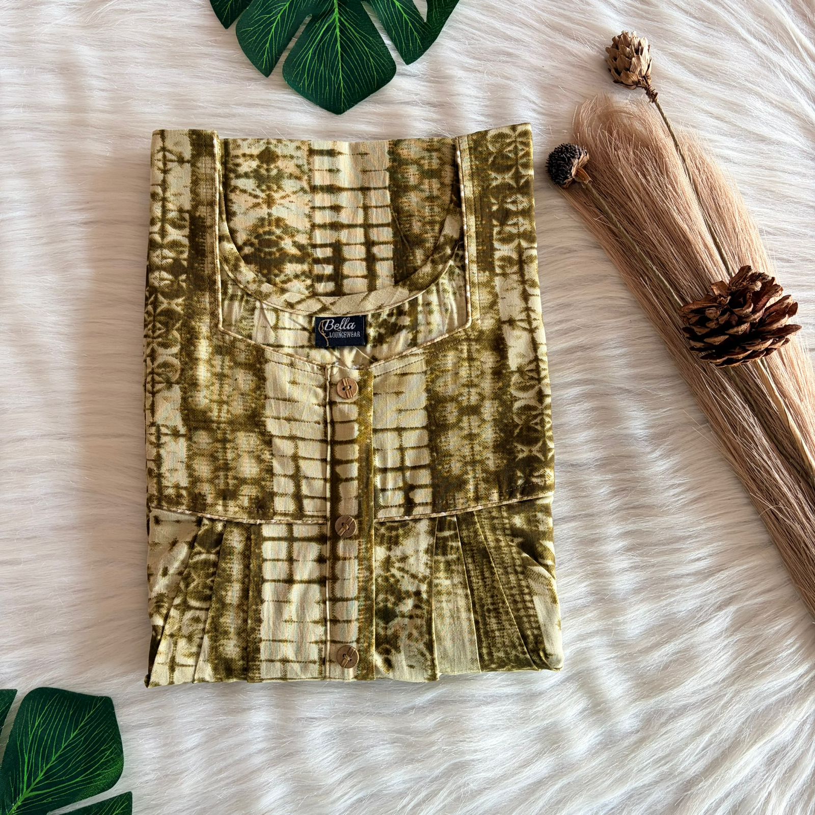 Olive Green Printed Premium Cotton Button Zip Nighty | Free Size | Chest Width 44″| Length 55″-56″