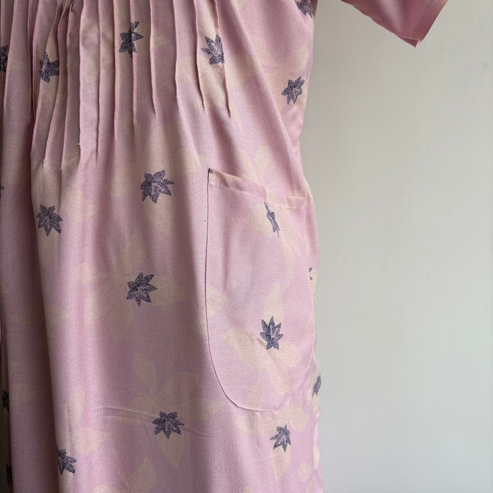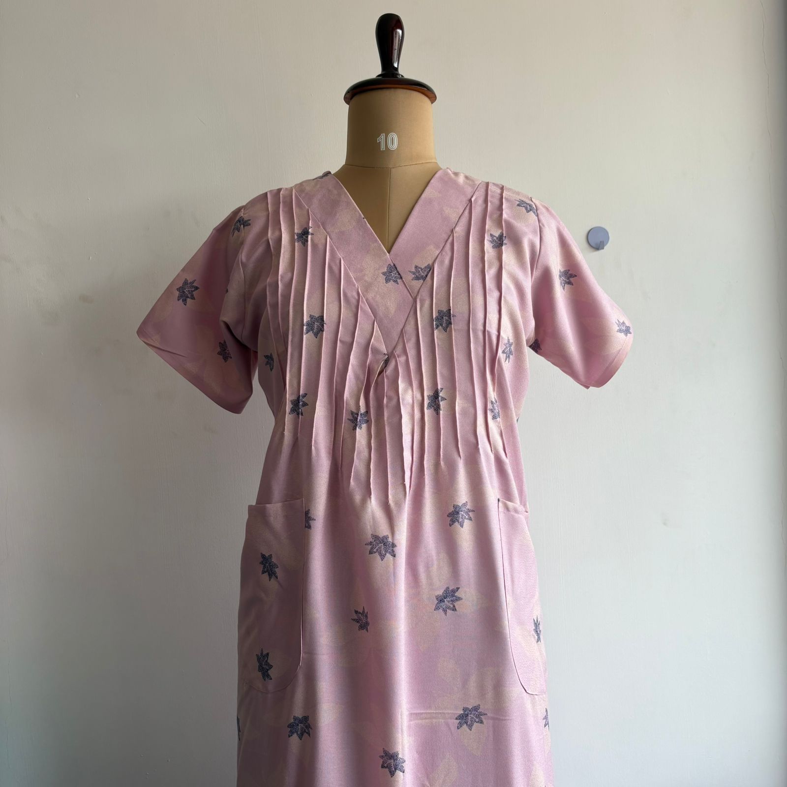 Pale Pink Floral Printed V-Neck Alpine Churidar Cut Nighty | Free Size | Chest Width 44″| Length 56″|