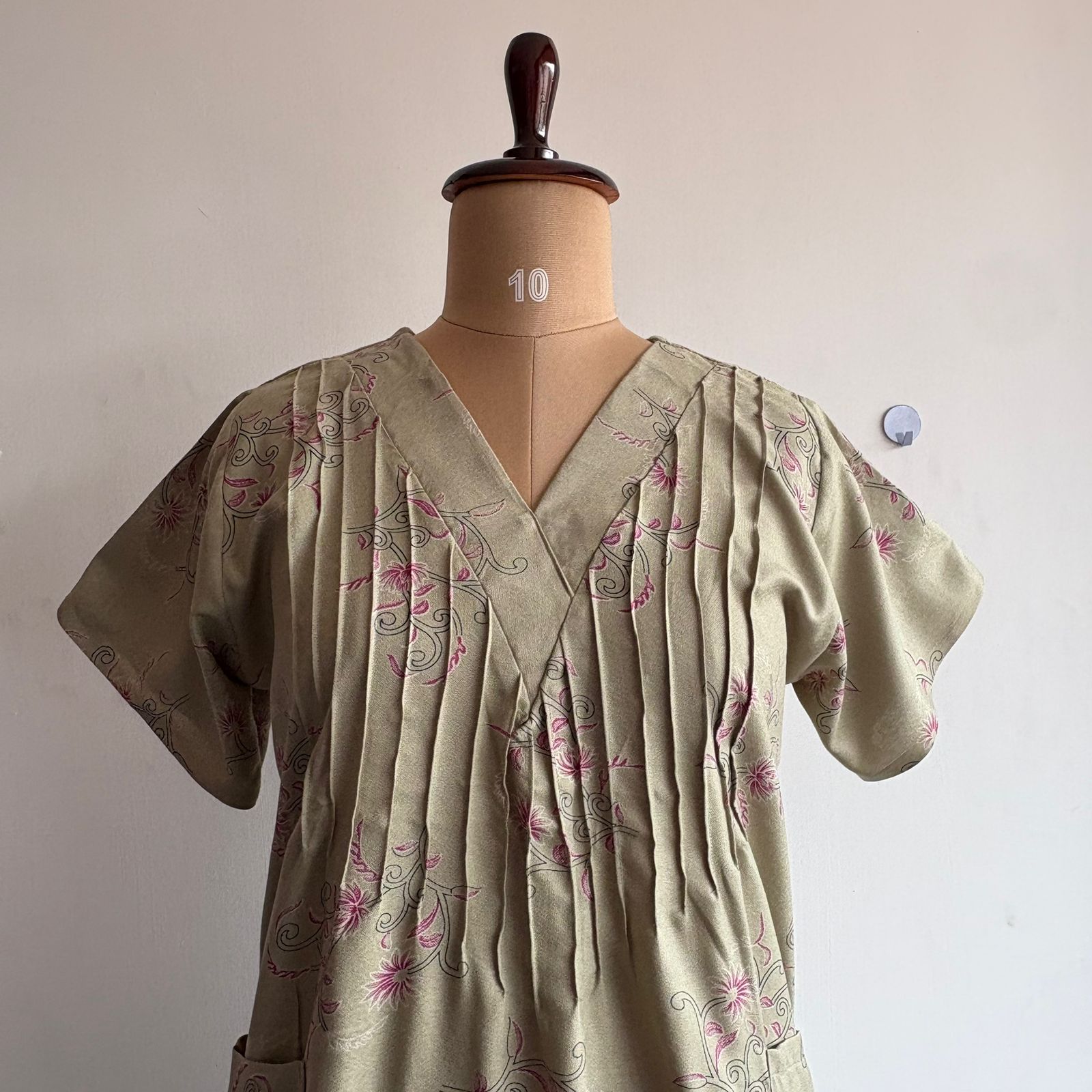 Pastel Green Floral Printed V-Neck Alpine Churidar Cut Nighty | Free Size | Chest Width 44″| Length 56″|