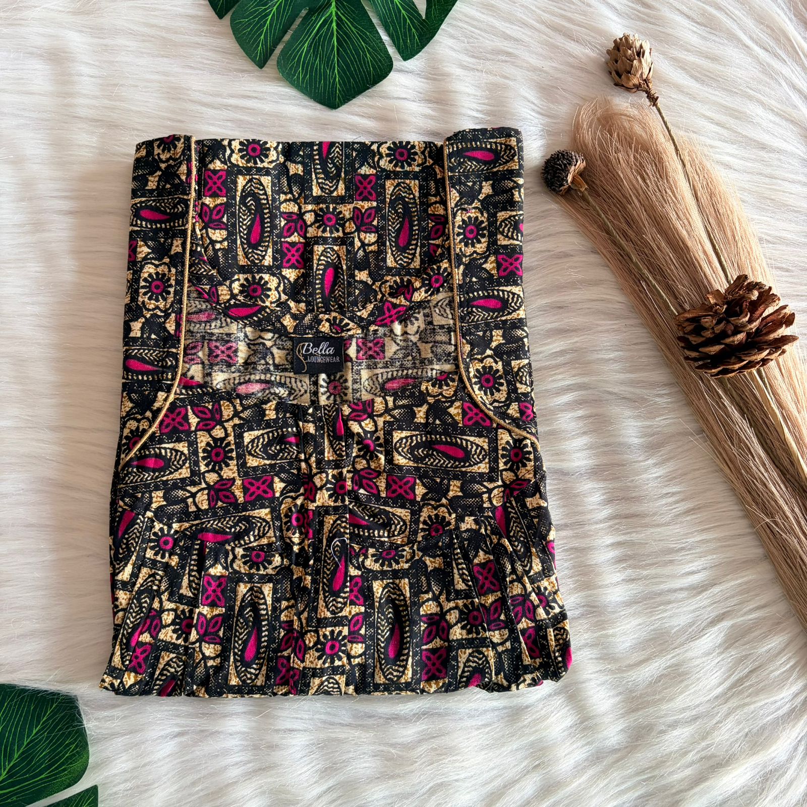 Pink And Brown Printed Premium Cotton Pleated Zip Nighty | Free Size | Chest Width 44″| Length 54″-55″