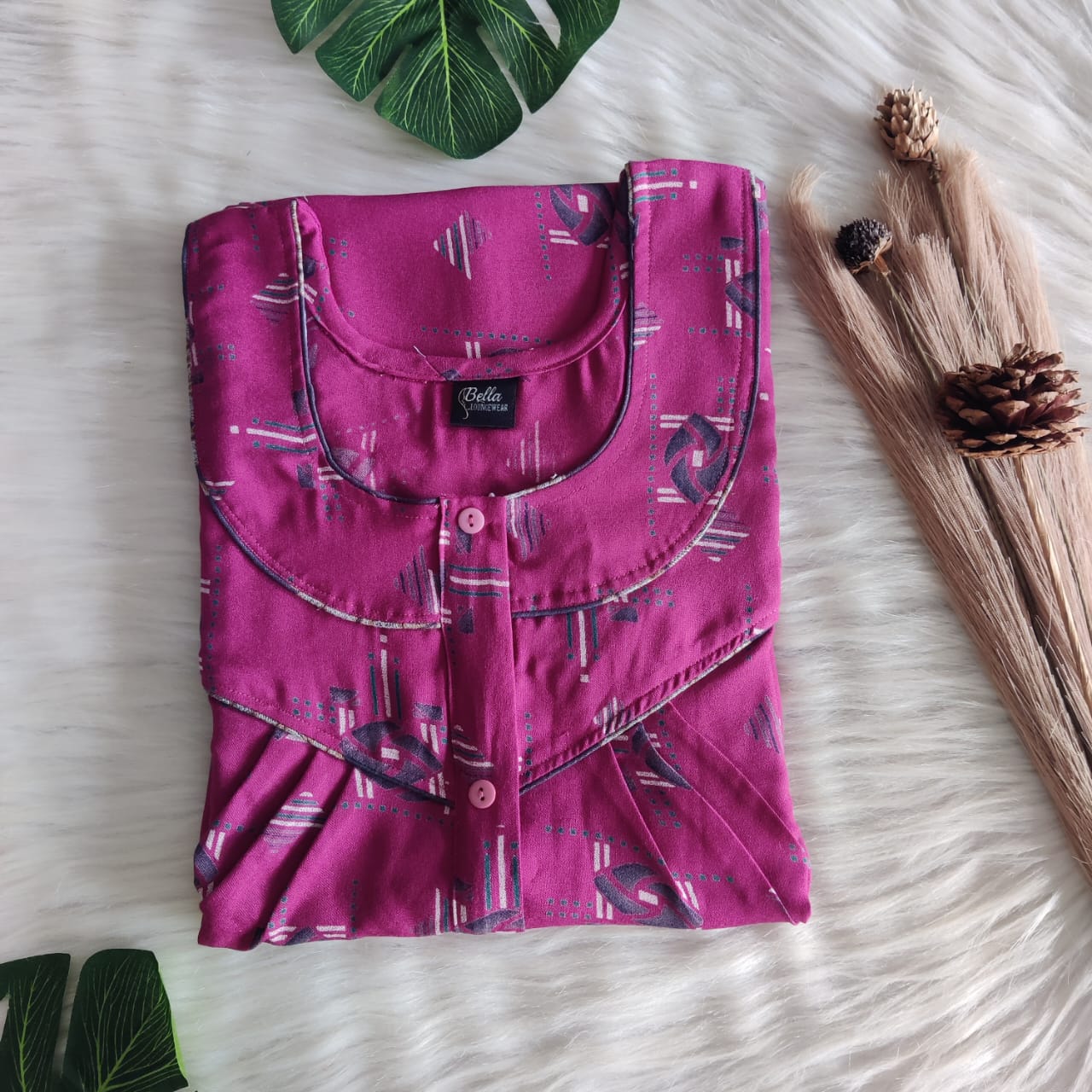 Pink Printed Alpine Long Zip Feeding Nighty | Free Size | Chest Width 44″| Length 56″