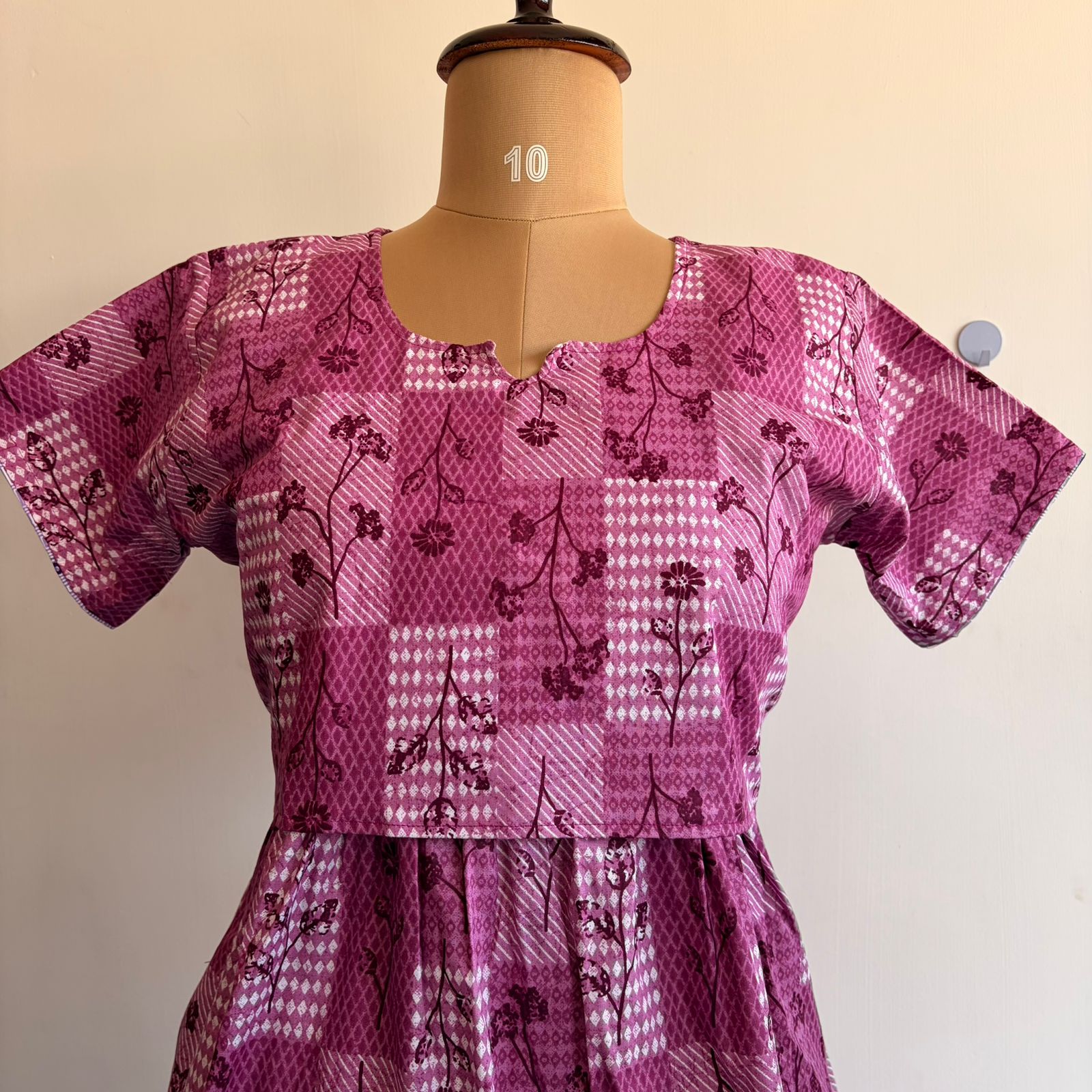 Pink Printed Premium Cotton Buttonless Zipless Short Maternity Nighty | Free Size | Chest Width 44″| Length 46″