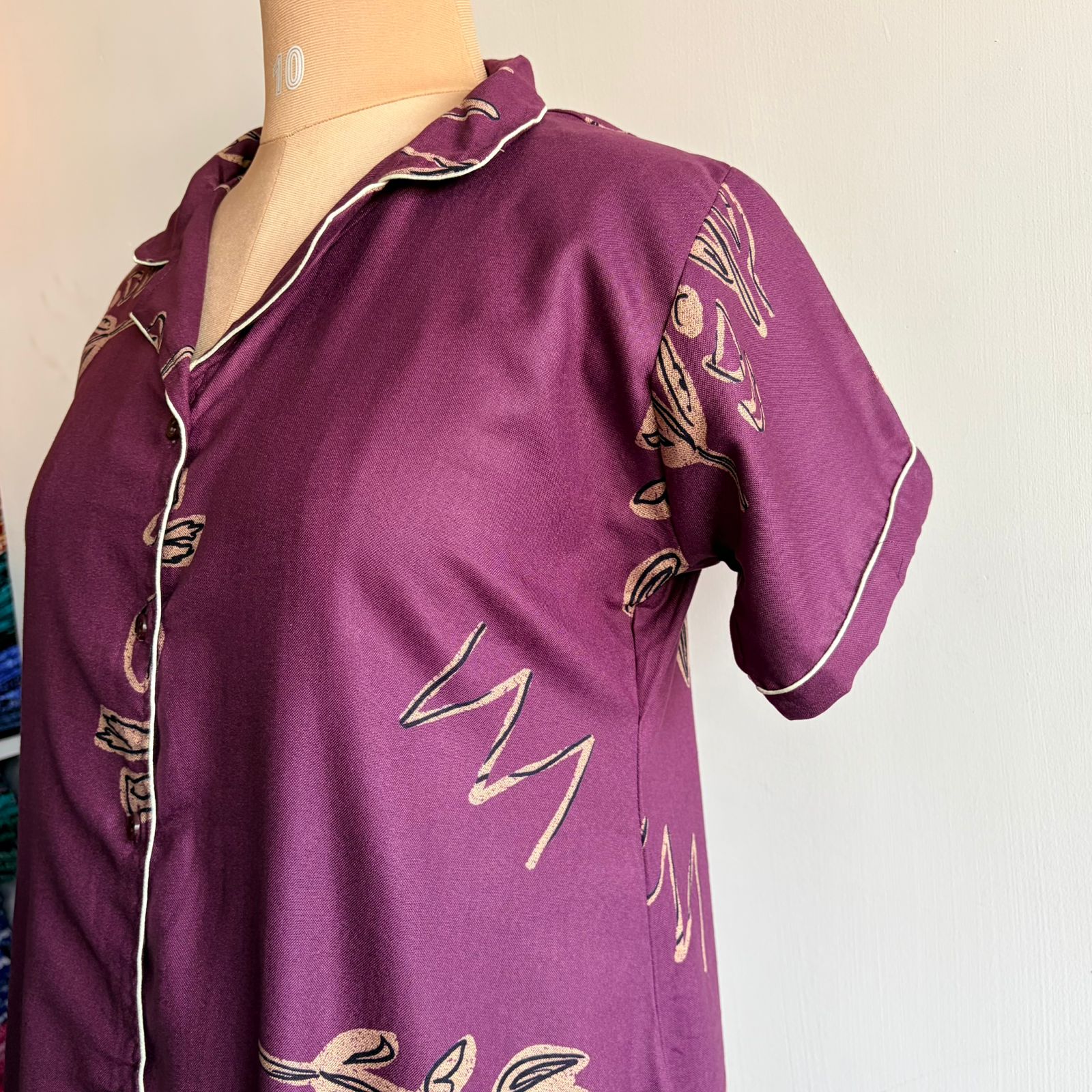 Purple Printed Alpine Full Open Long Polo Shirt Dress | Side Pocket | Free Size | Chest Width 44″| Length 44″