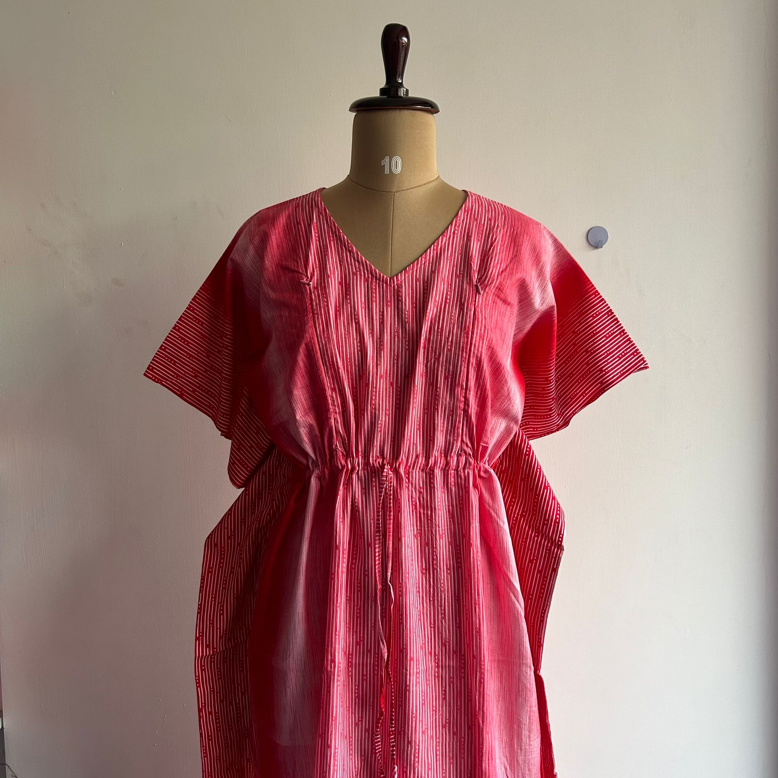Red And Peach Printed Feeding Kaftan | Free Size | Chest Width 44″| Length 56″|