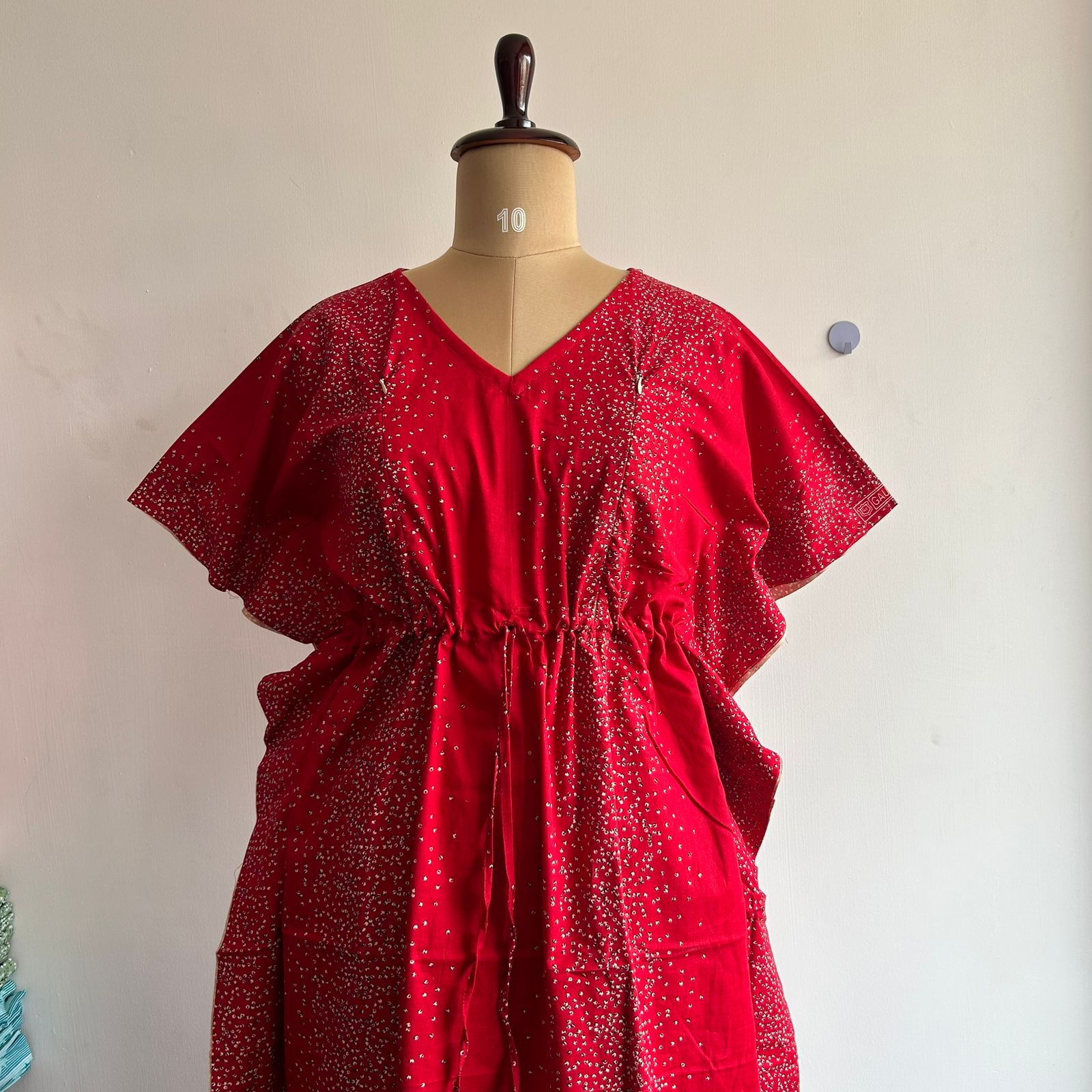 Red Dot Printed Gujari Feeding Kaftan | Free Size | Chest Width 44″| Length 56″