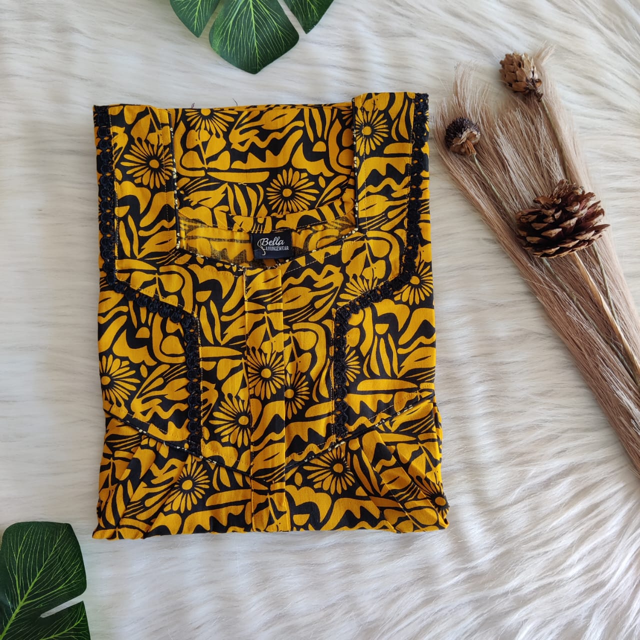 Yellow And Black Floral Printed Premium Cotton Long Zip Lace Feeding Nighty | Free Size | Chest Width 44″| Length 56″