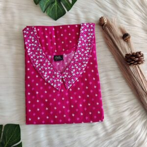 White And Pink Printed Premium Cotton Peter Pan Collar Nighty | Free Size | Chest Width 44″| Length 55″-56″