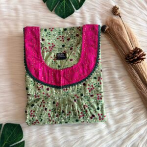 Green Floral Printed Premium Cotton Hakoba Lace Nighty | Free Size | Chest Width 44″| Length 54″-56″