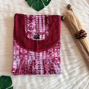 Pink And Maroon Printed Premium Cotton Hakoba Lace Nighty | Free Size | Chest Width 44″| Length 54″-56″