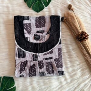 Brown Printed Premium Cotton Hakoba Lace Nighty | Free Size | Chest Width 44″| Length 54″-56″