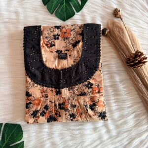 Brown Floral Printed Premium Cotton Hakoba Lace Nighty | Free Size | Chest Width 44″| Length 54″-56″
