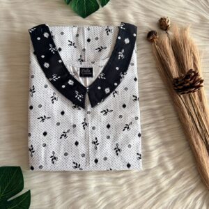 Grey Floral Printed Pure Cotton Peter Pan Collar Long Zip Sleeveless Feeding Nighty