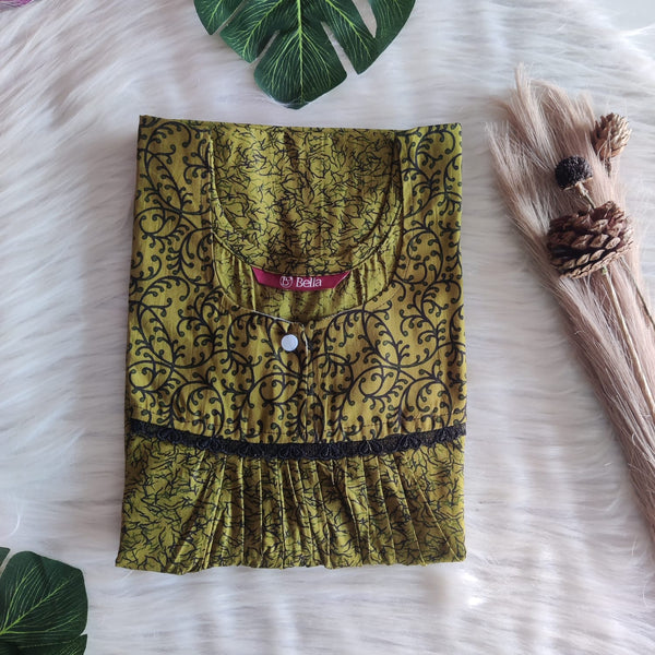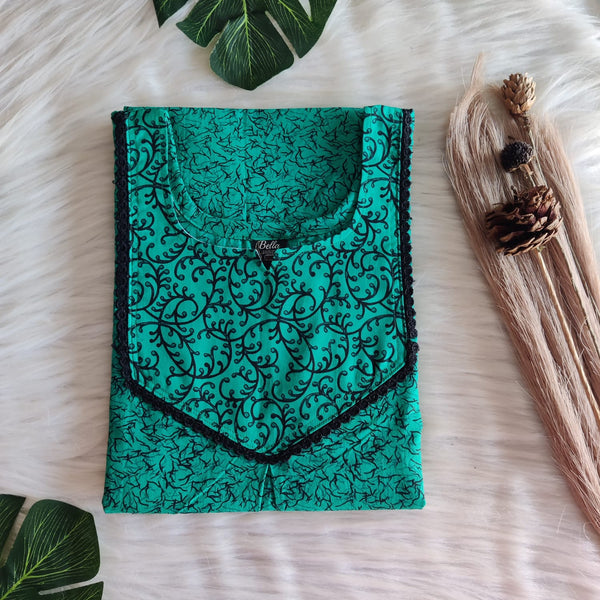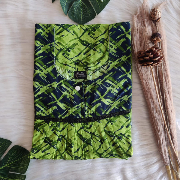 Black And Green Printed Premium Cotton Lace Nighty | Free Size | Chest Width 44″| Length 54″-56″
