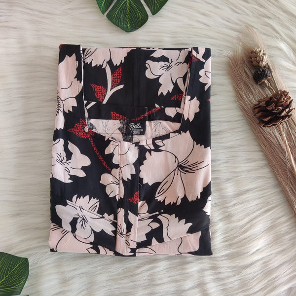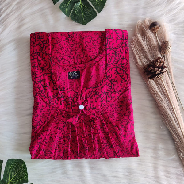 Black And Pink Printed Premium Cotton No Zip Pleated Nighty | Free Size | Chest Width 44″| Length 55″-56″