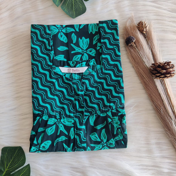 Black And Green Printed Premium Cotton Mix N Match Lace Pocket Nighty | Free Size | Chest Width 44″| Length 56″