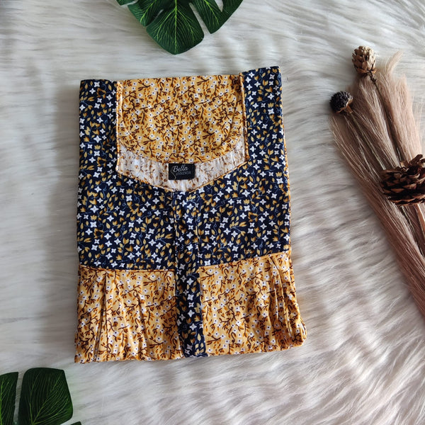Black And Mustard Yellow Premium Cotton Square Neck Pleated Nighty | Free Size | Chest Width 44″| Length 55″-56″