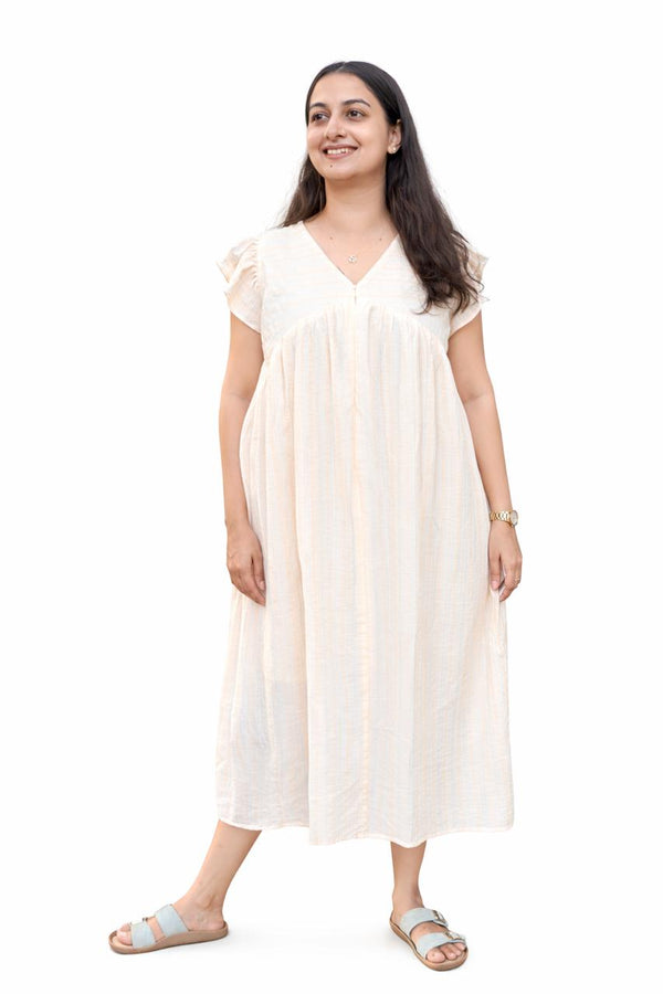 Ivory Premium Cotton Pleated Zip Nighty | Free Size | Chest Width 44″| Length 54″-55″