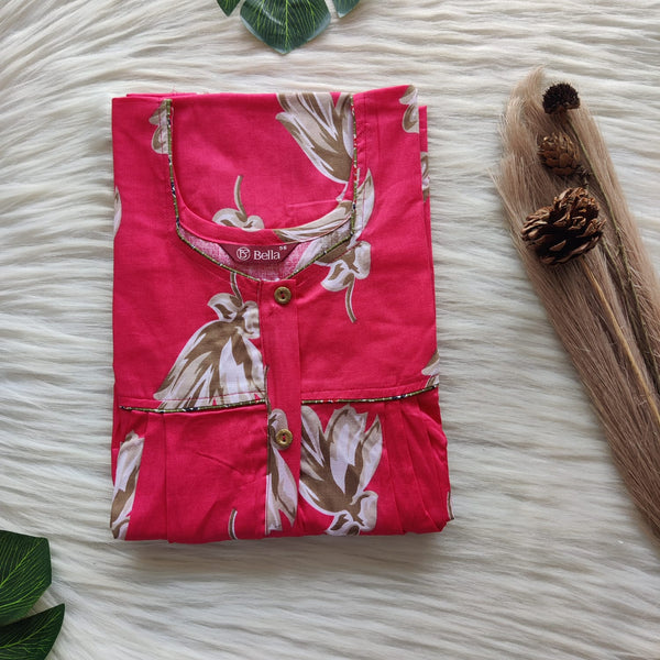Pink Printed Premium Cotton Button Zip Nighty | Free Size | Chest Width 44″| Length 55″-56″