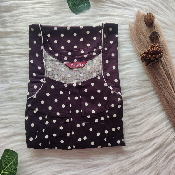 Coffee Brown Dot Printed Gujari Cotton Hakoba Lace Nighty | Free Size | Chest Width 44″| Length 54″-56″